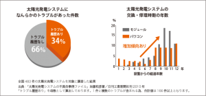 実は、太陽光パネルは元々「メンテナンスフリー」をうたわれて、エコな部分も相まって急速に導入が進みました。それが、今から約8年程度前のことになります。しかし実は、現在その頃に設置したパネルに不具合が増えているのです。